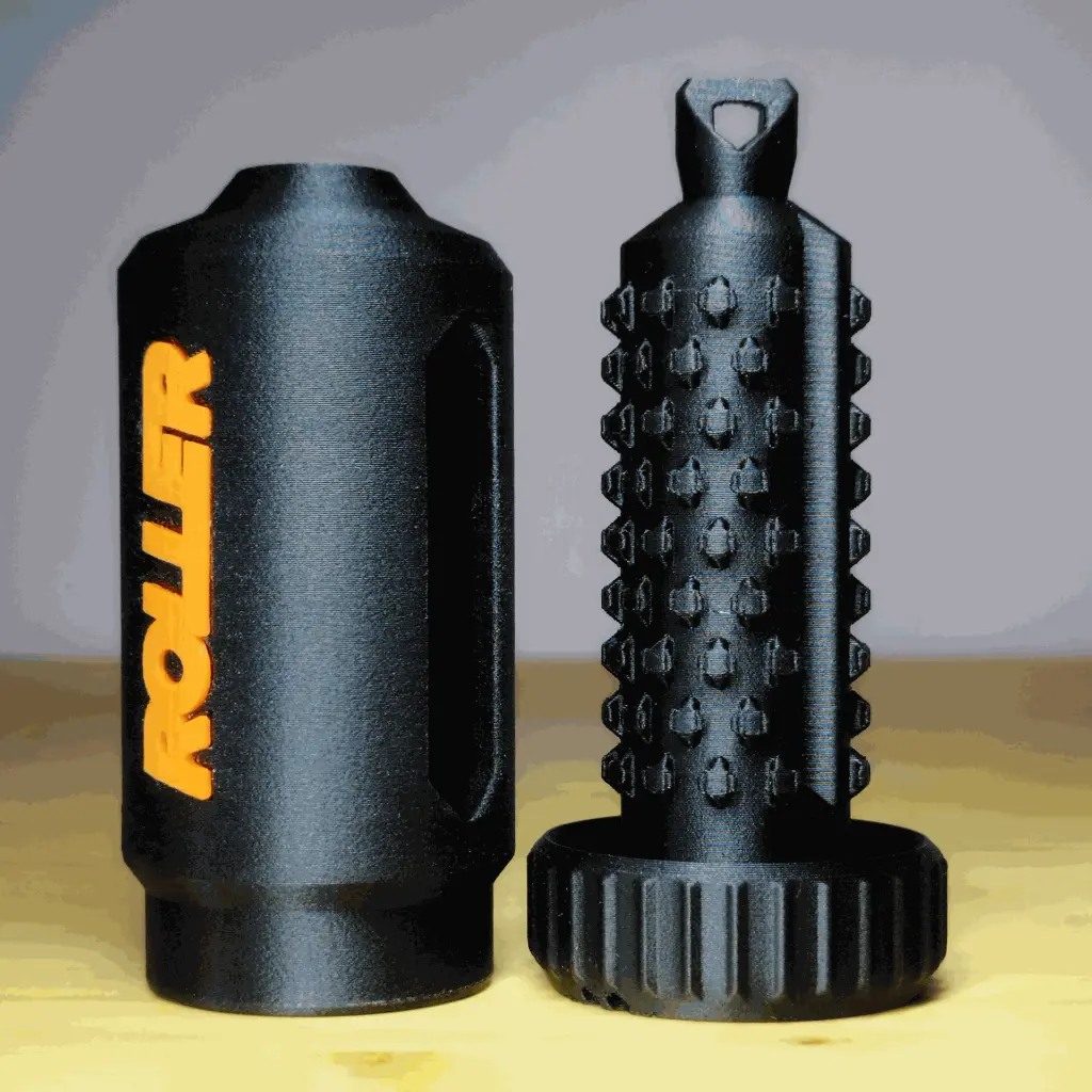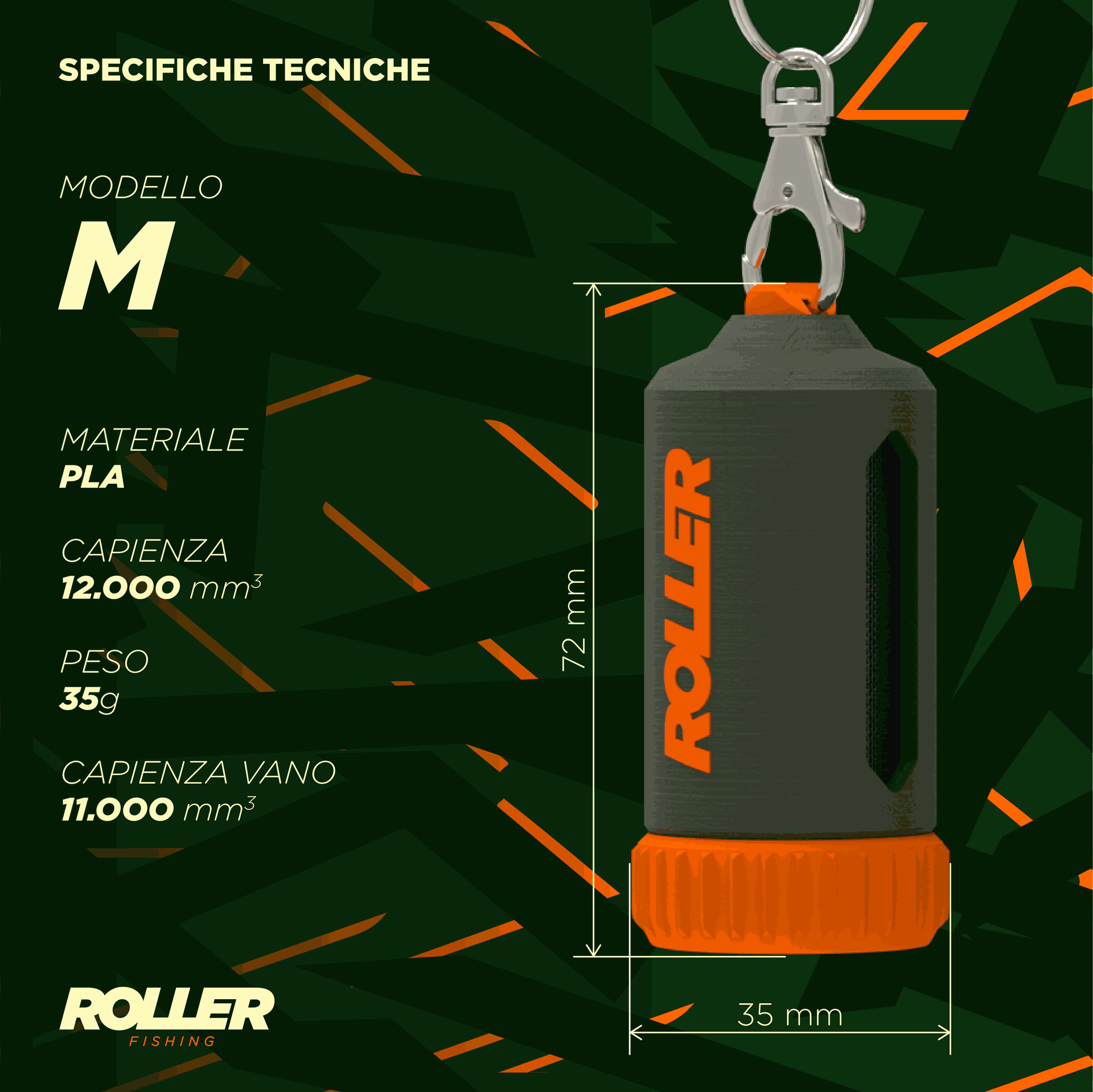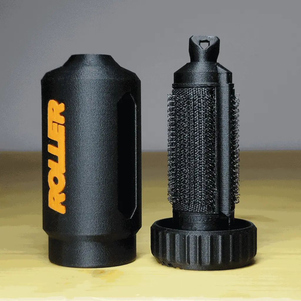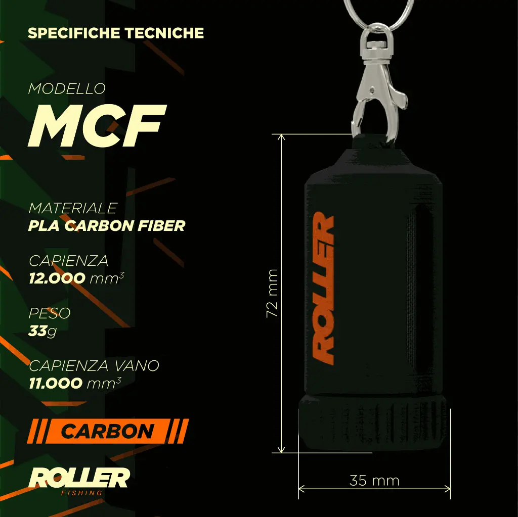 Roller MCF – La versione evoluta del modello M, realizzata in PLA caricato con fibre di carbonio per maggiore resistenza agli urti e durata nel tempo, con un peso ulteriormente ridotto a 33 g. Stesse dimensioni e capacità del modello M, prestazioni superiori.