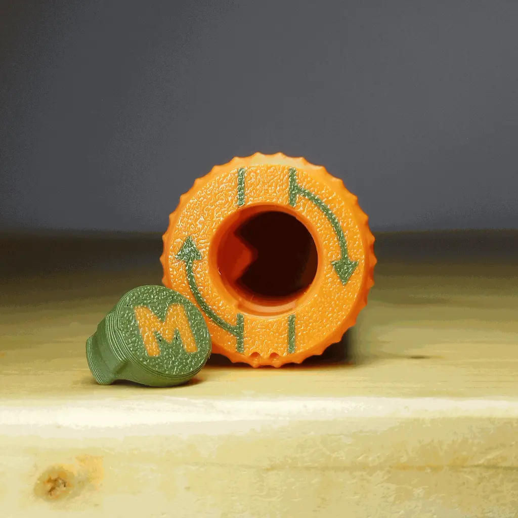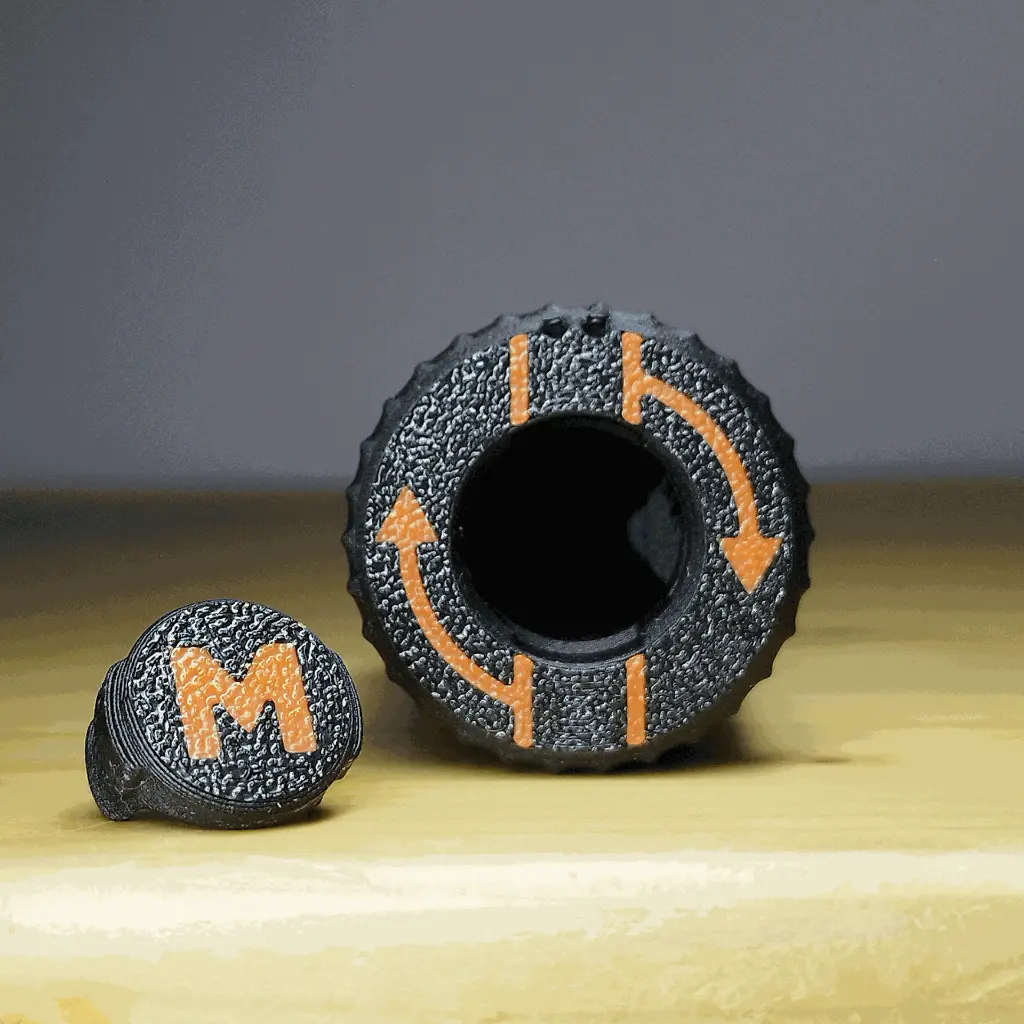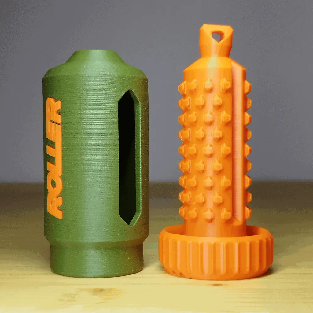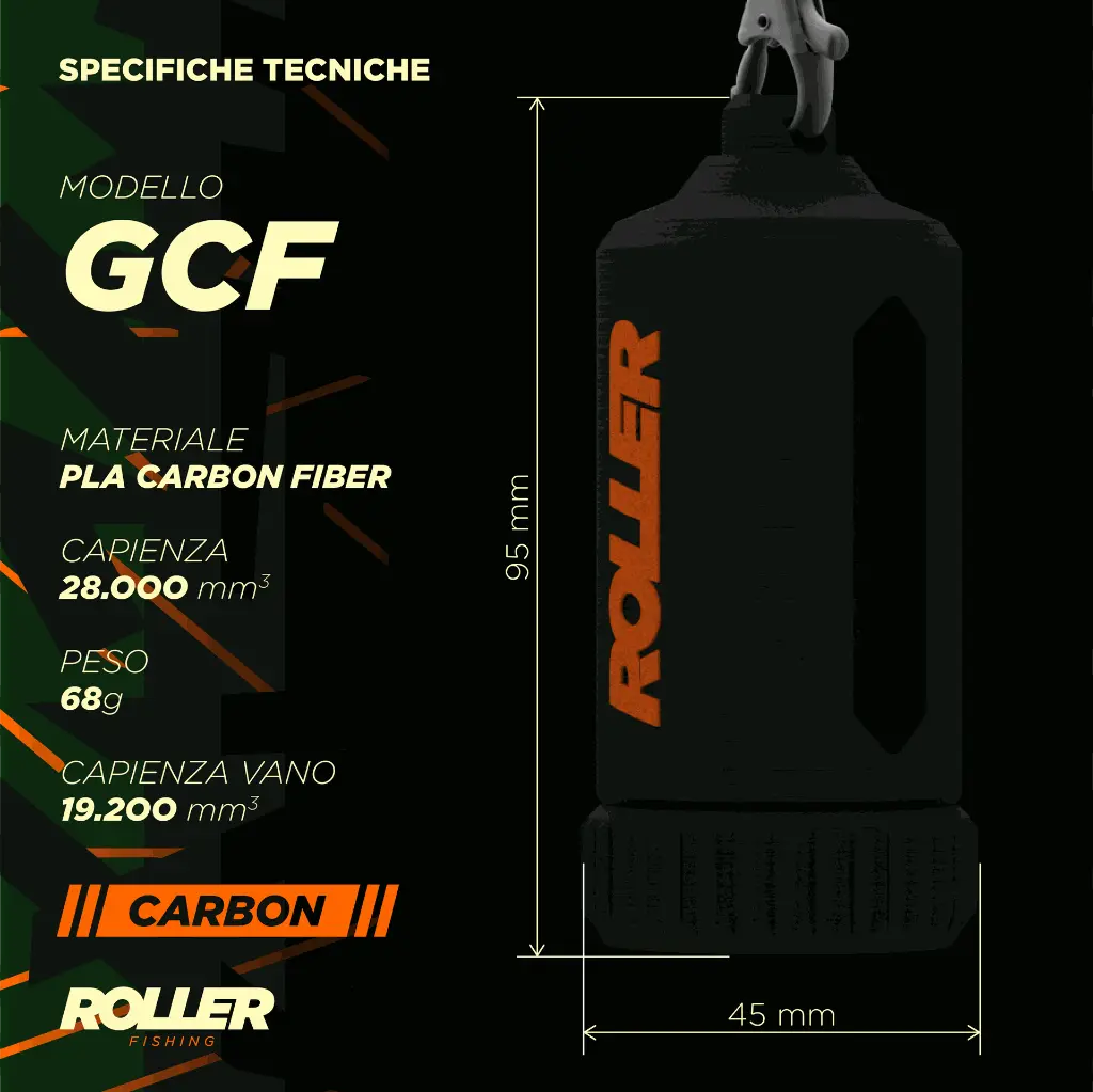 Roller MCF – La versione evoluta del modello M, realizzata in PLA caricato con fibre di carbonio per maggiore resistenza agli urti e durata nel tempo, con un peso ulteriormente ridotto a 33 g. Stesse dimensioni e capacità del modello M, prestazioni superiori.
